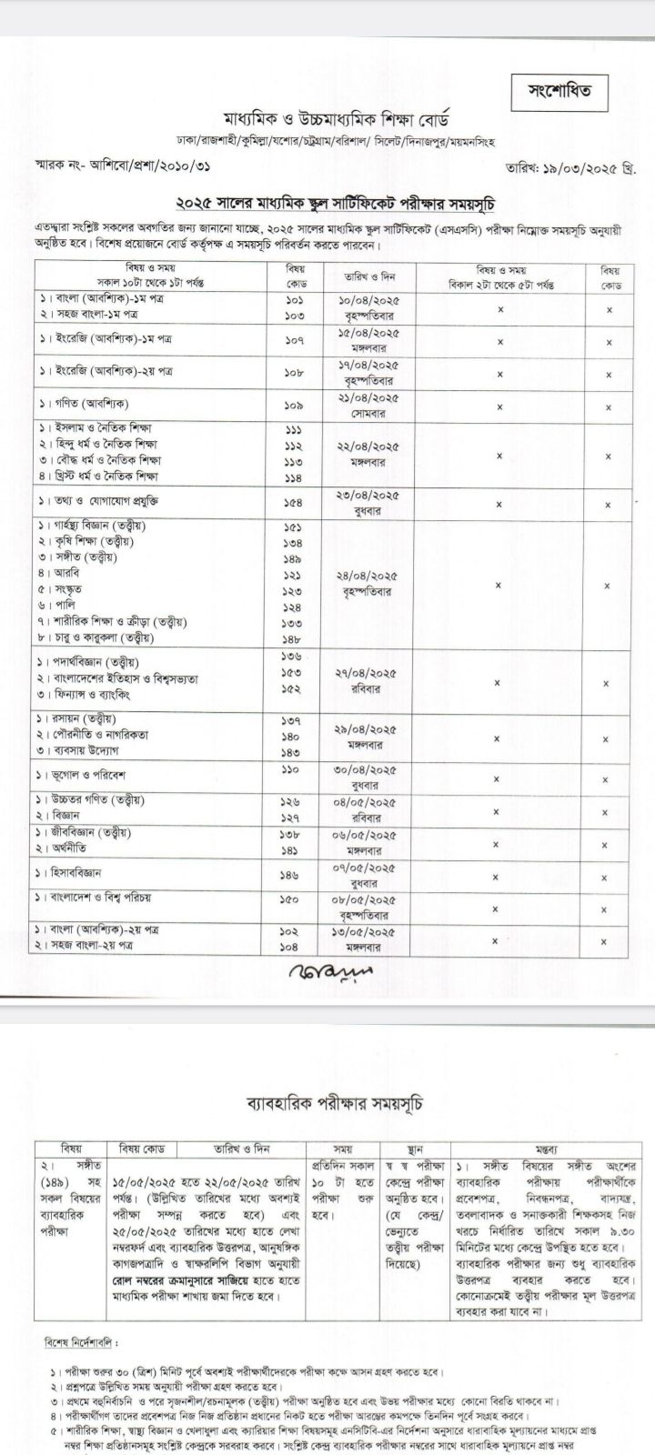 এসএসসি ২০২৫ সময়সূচি